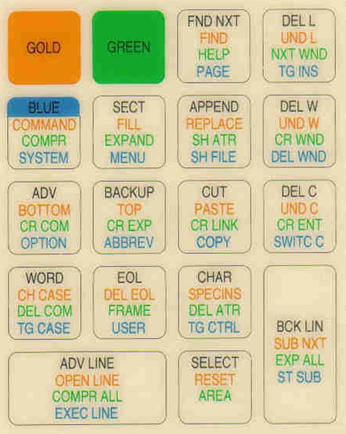 One of the keys was the GOLD key, a kind of a shift key. By first pressing the GOLD key and then another key you would gain access to the GOLD operations. For example, by pressing PF4 (Delete Line), moving the cursor and then PF1 (GOLD) + PF4 (Undelete Line) you could move a line. This was much more efficient!